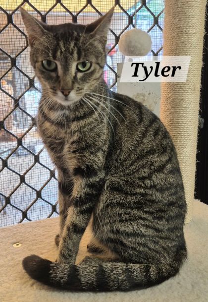 Breed: DSH About: A few weeks ago, on a Saturday morning as staff were arriving at work, a skinny hungry crying cat came running up to the gate…. so let us introduce you to the now happy, content and smoochie Tyler, If you would like to meet Tyler please fill out this Pre-Adoption Questionnaire Cats are located at 167 McCoombe St Bungalow, entrance off Cava Close